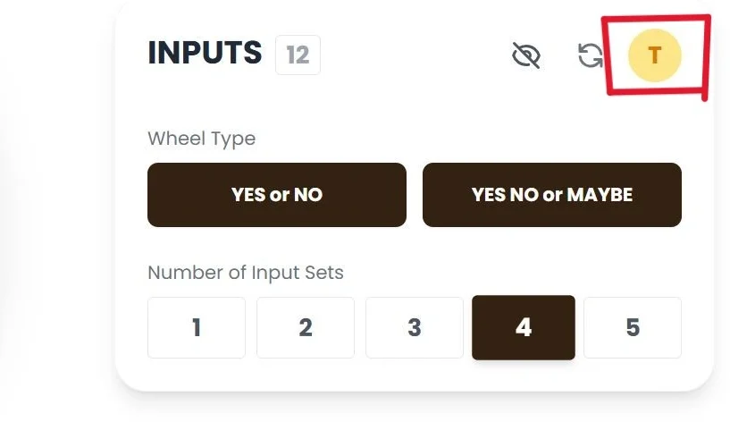 - 👁️ Focus Mode: On mobile devices or smaller screens, menus can get in the way. We added a special Focus Mode. Simply click the Eye Icon (Hide Inputs) in the “Inputs” section. This instantly hides all settings and sidebars, letting the Yes or No Wheel take up the full screen. It is perfect for recording videos for social media or just focusing on the spin.